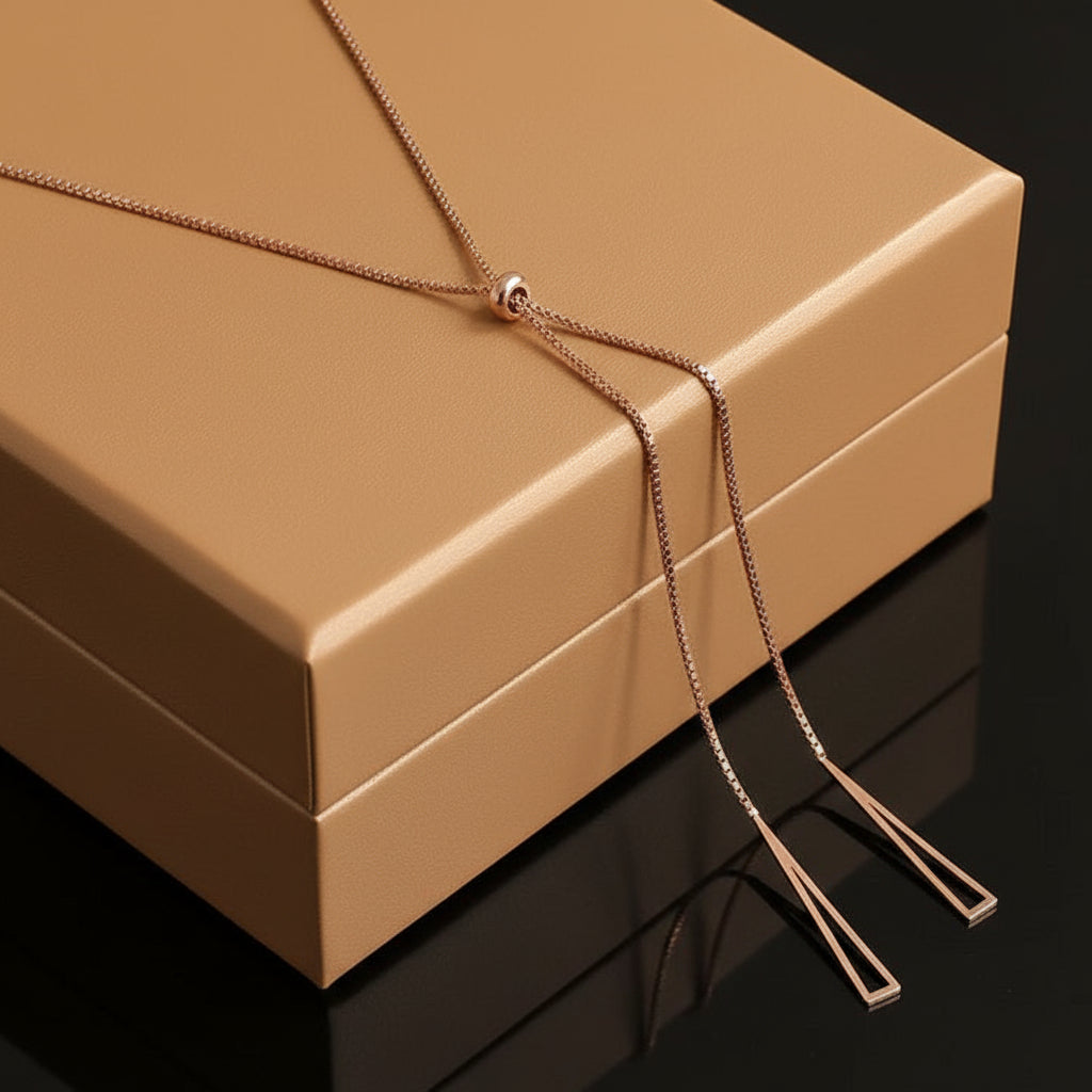 Featuring twin triangle pendants suspended on a fine gold-tone chain, this piece blends geometric elegance with everyday versatility. The front-adjustable design lets you style the length your way — tighter for layering or looser for a delicate drop. Whether worn solo or paired, Noor is your subtle power piece.